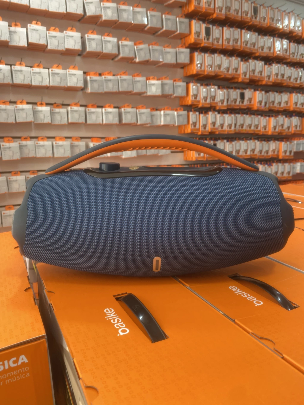 Design moderno que combina som potente com visual atraente.